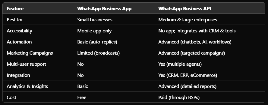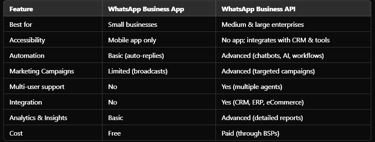 If you're a growing or large business looking for scalability, automation, marketing, and integration, WhatsApp Business API is the better option.